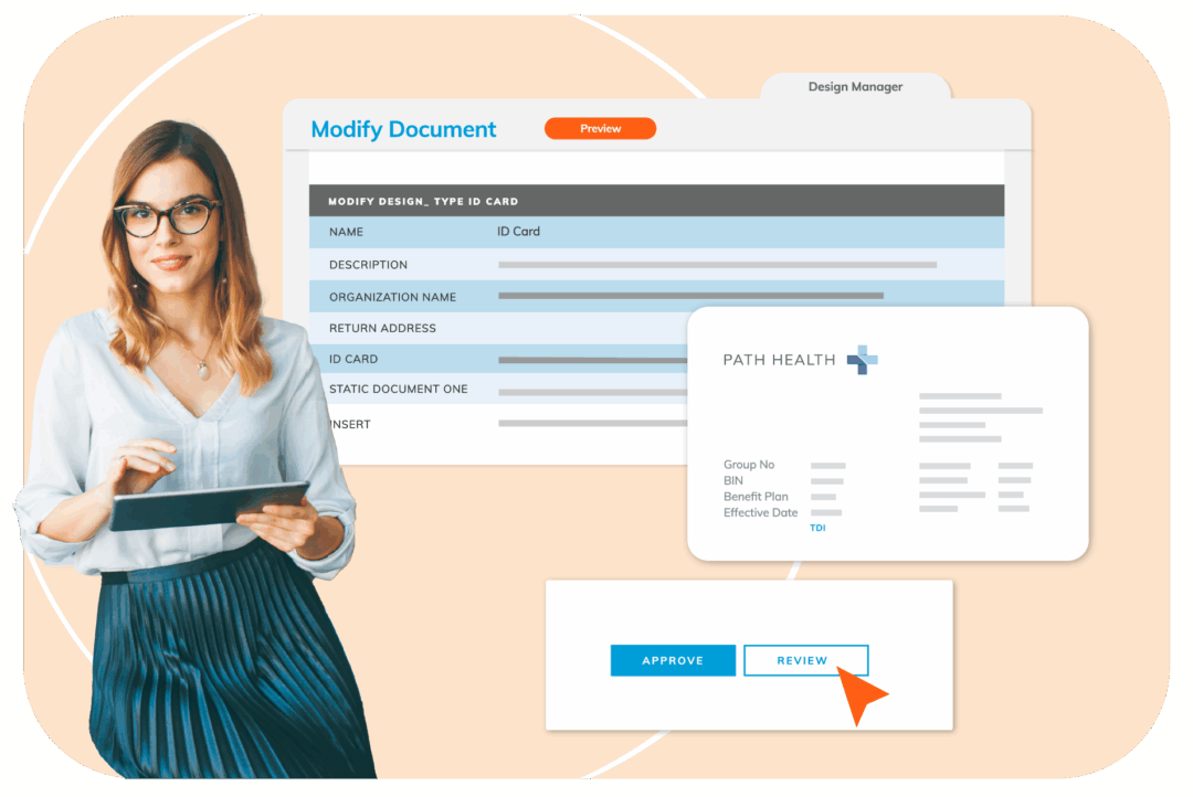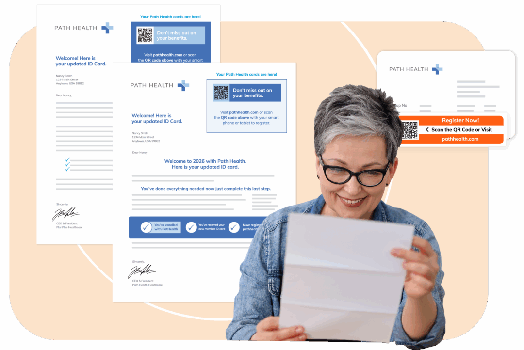 Personalize the welcome experience using dynamic designs for ID cards, letters, kits, and member guides.